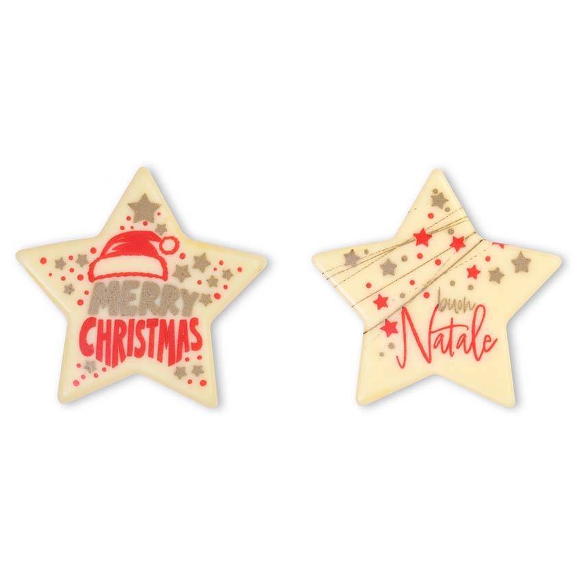 Tarjeta Merry Christmas Buon Natale Estrella Chocolate Blanco 40 u.